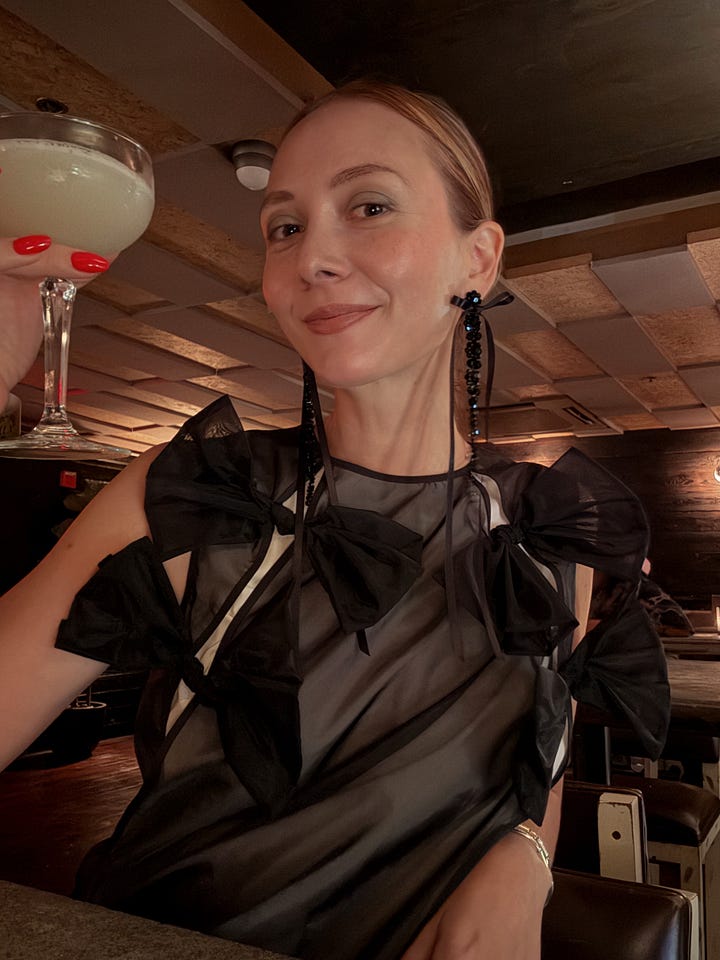 From there, the night unfolded the way only this city can: a cocktail in hand, conversations in packed bars, a yellow cab waiting outside, and finally the anticipation of the show itself. I’ll let the photos tell the rest of the story - the bows and boots, the rides and late-night toasts, the feeling of being swept into the current of Fashion Week in the city I call home.