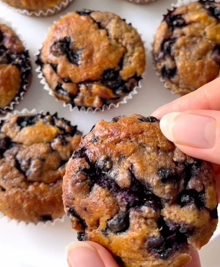 Blueberry Muffins: Sweet but not from sugar, and they come together in literally 15 minutes. I use a mini muffin tin - they’re as fun to eat as they are quick.